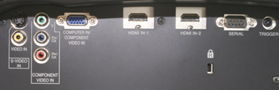 Keine Neuigkeiten sind bei den Anschlüssen zu verzeichnen. Das Heck des Beamers wird von allen relvanten Eingängen geziert, allen voran zwei HDMI-Buchsen mit zukunftssicherem HDM1.3-Standard.